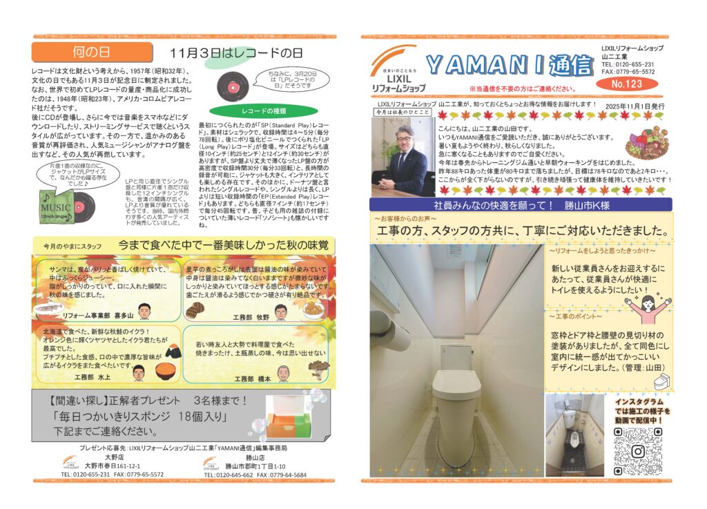 YAMANI通信 11月号発刊 (大野市・勝山市特定地域配布)